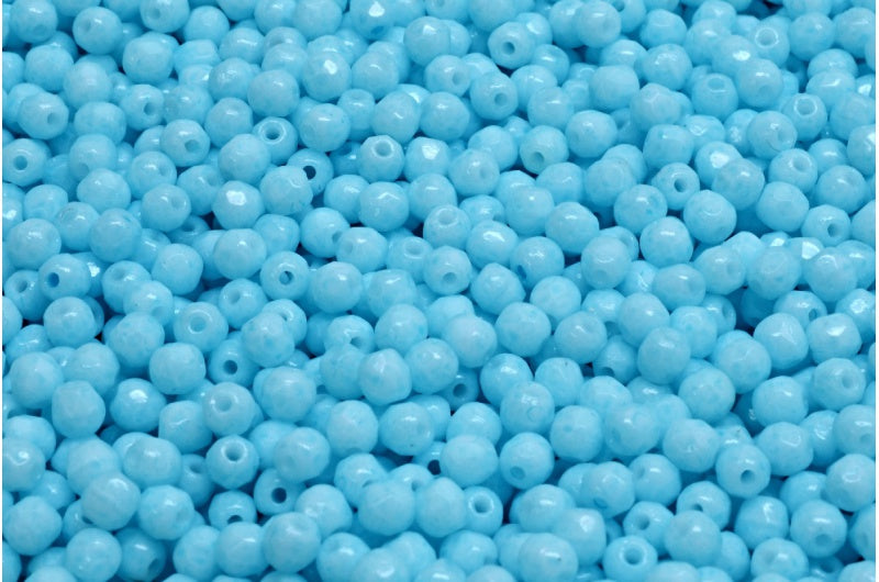 Faceted Round Fire Polished Beads, Chalk White Light Aqua Blue (03000-34308), Glass, Czech Republic