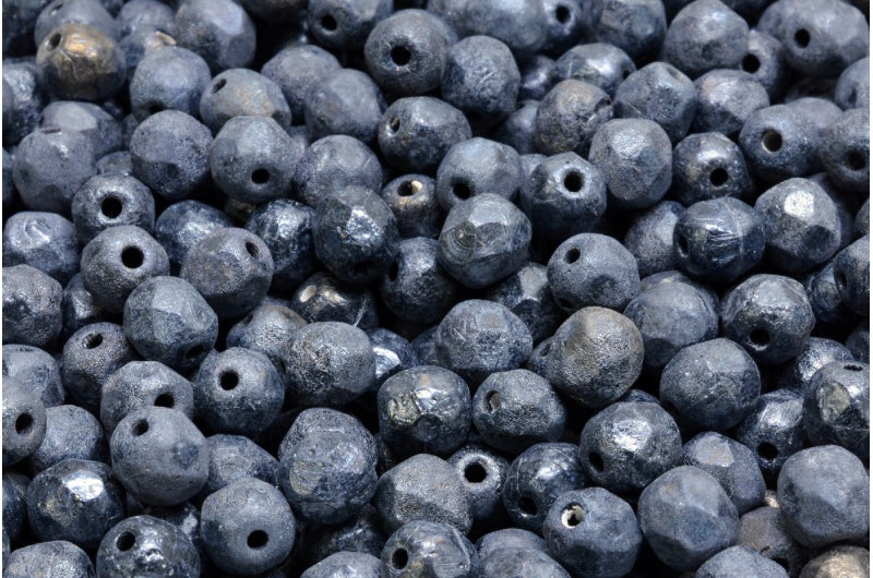 Faceted Round Fire Polished Beads, Black Etched Hematite (23980-ETCH-14400), Glass, Czech Republic