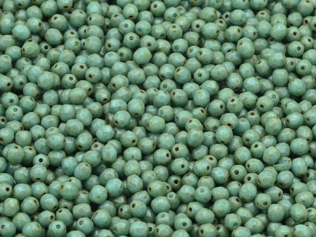 Faceted Round Fire Polished Beads, Blue Travertin (63020-86800), Glass, Czech Republic