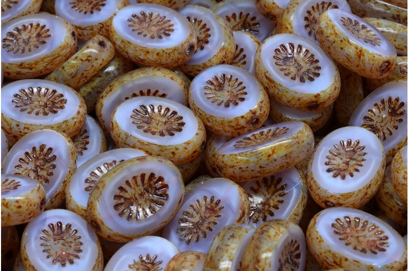 Regular price From $32.07 USDRegular priceUnit price / perSale price From $32.07 USDTable Cut Sun Beads, Transparent Green Travertin (50500-86800), Glass, Czech Republic