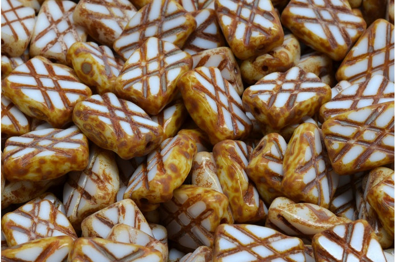 Regular price From $33.20 USDRegular priceUnit price / perSale price From $33.20 USDTable Cut Kiwi Beads, Opal White Travertin (01000-86800), Glass, Czech Republic