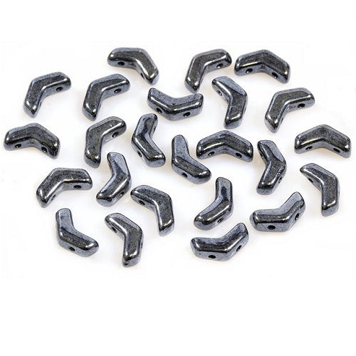 Arrow Czech 2-hole glass beads, Hematite, Glass, Czech Republic