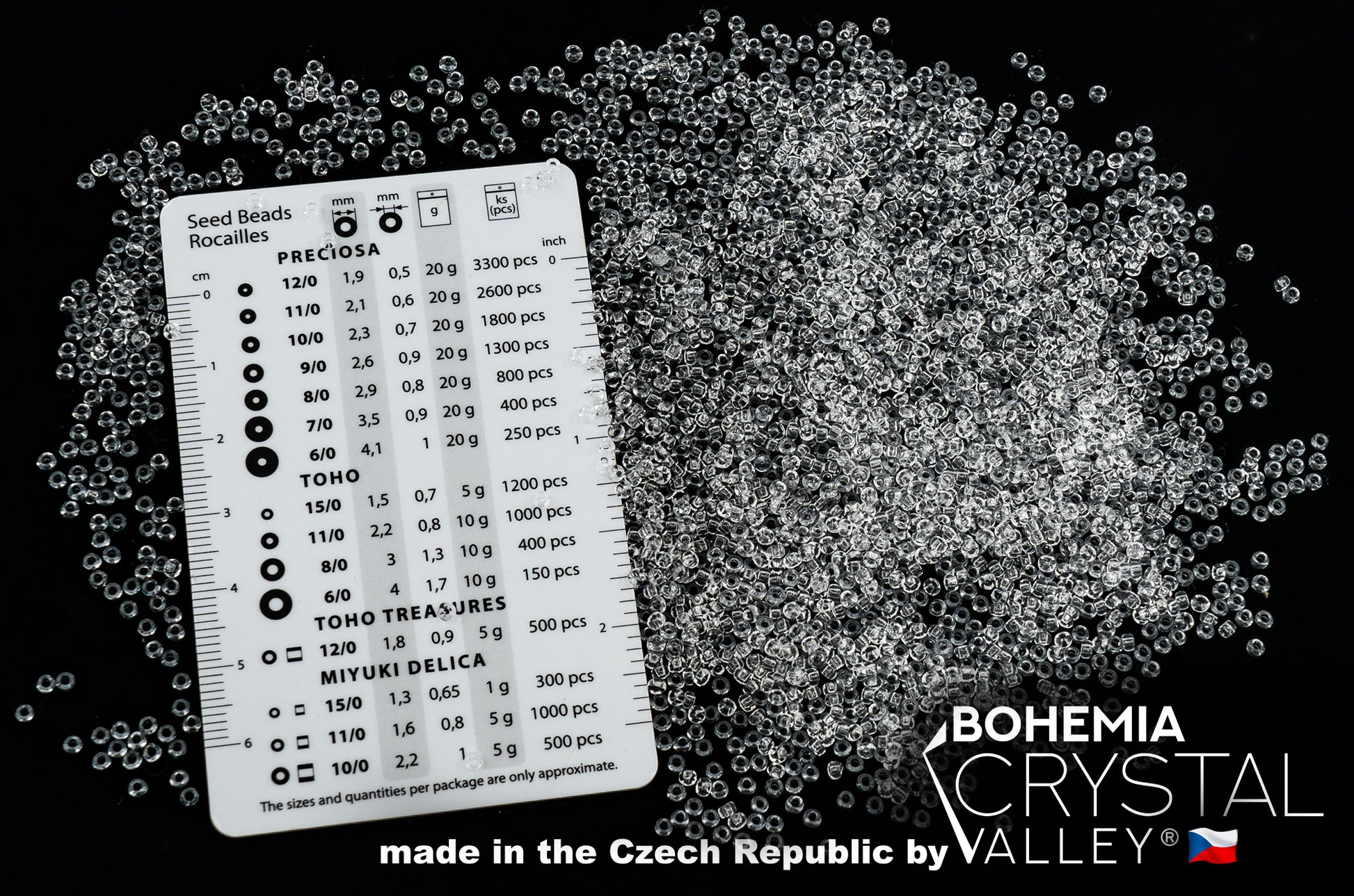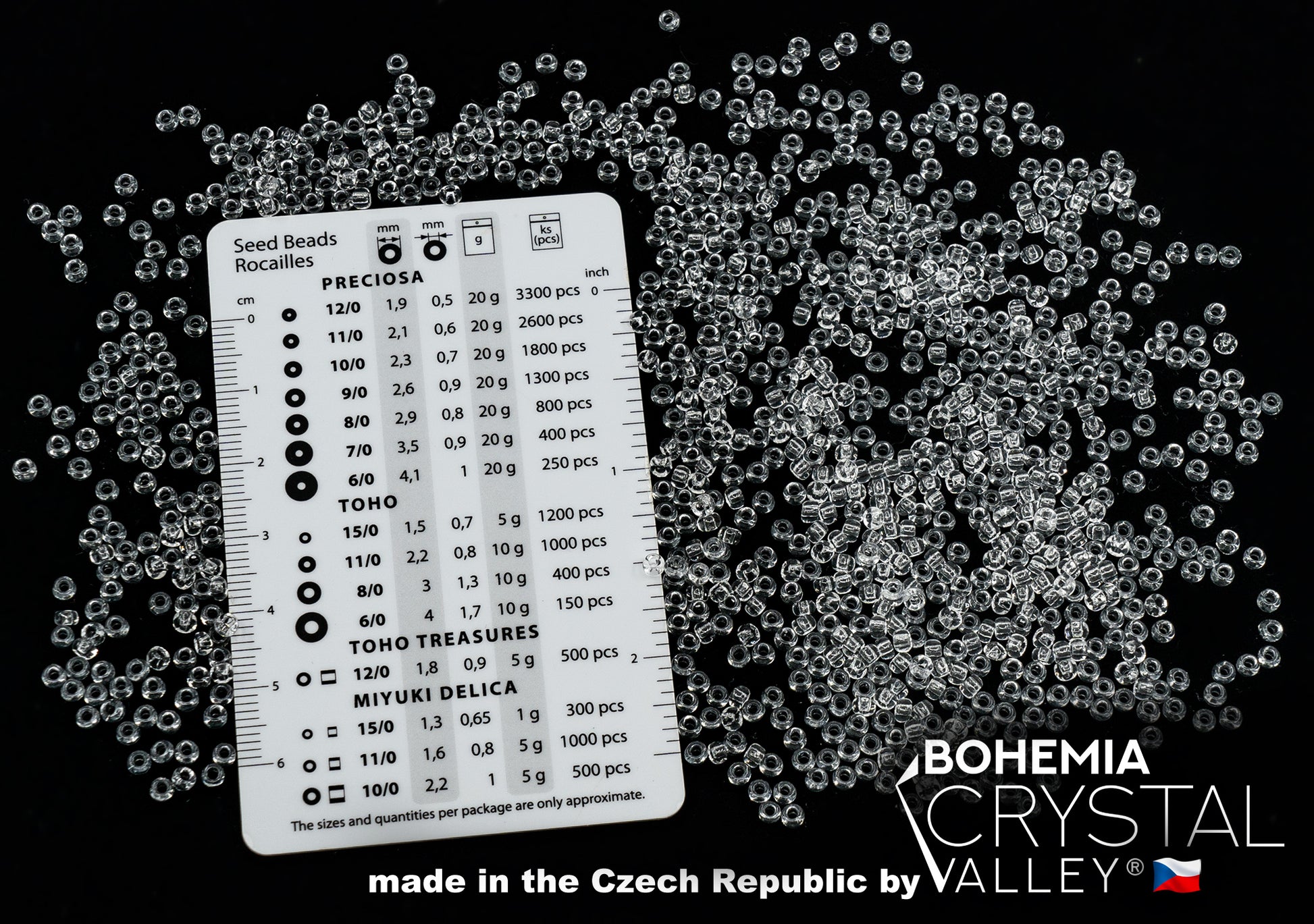 Preciosa Ornela Seed Beads, Transparent colorless Crystal 00050
