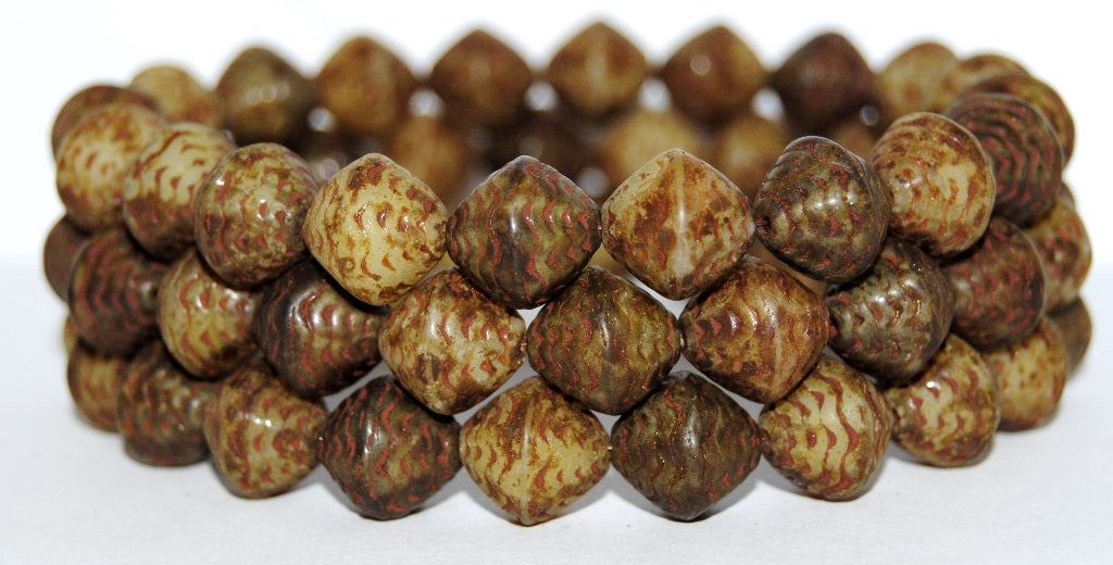 Bicone Pressed Glass Beads Wasp Nest, Mixed Colors Travertin (Mix 86800), Glass, Czech Republic