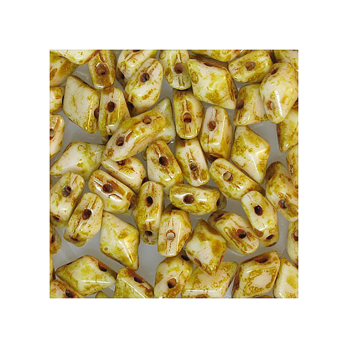 DIAMONDUO glass two-hole beads rhombus gemduo, White Travertine, Glass, Czech Republic