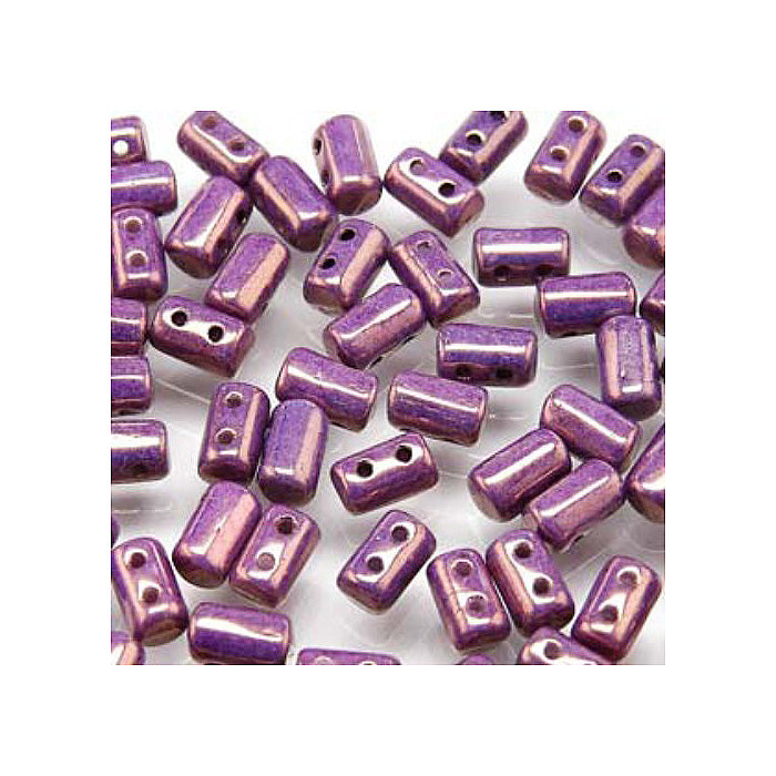 Matubo Rulla two-hole pressed glass beads cylinder, Chalk Metallic Luster Amethyst, Glass, Czech Republic