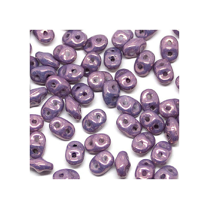 Matubo Superduo 2-hole czech pressed glass beads, Metallic Luster Amethyst Chalk, Glass, Czech Republic