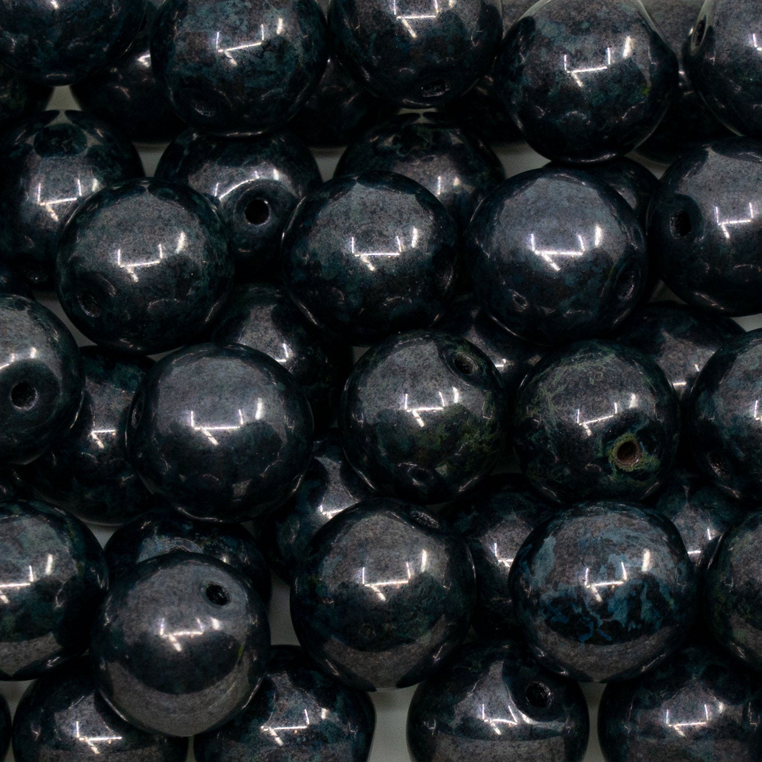 OUTLET 250g Round Druck Beads, 12 x 12 mm, Black Stain With Luster Blue (23980-65431), Glass, Czech Republic