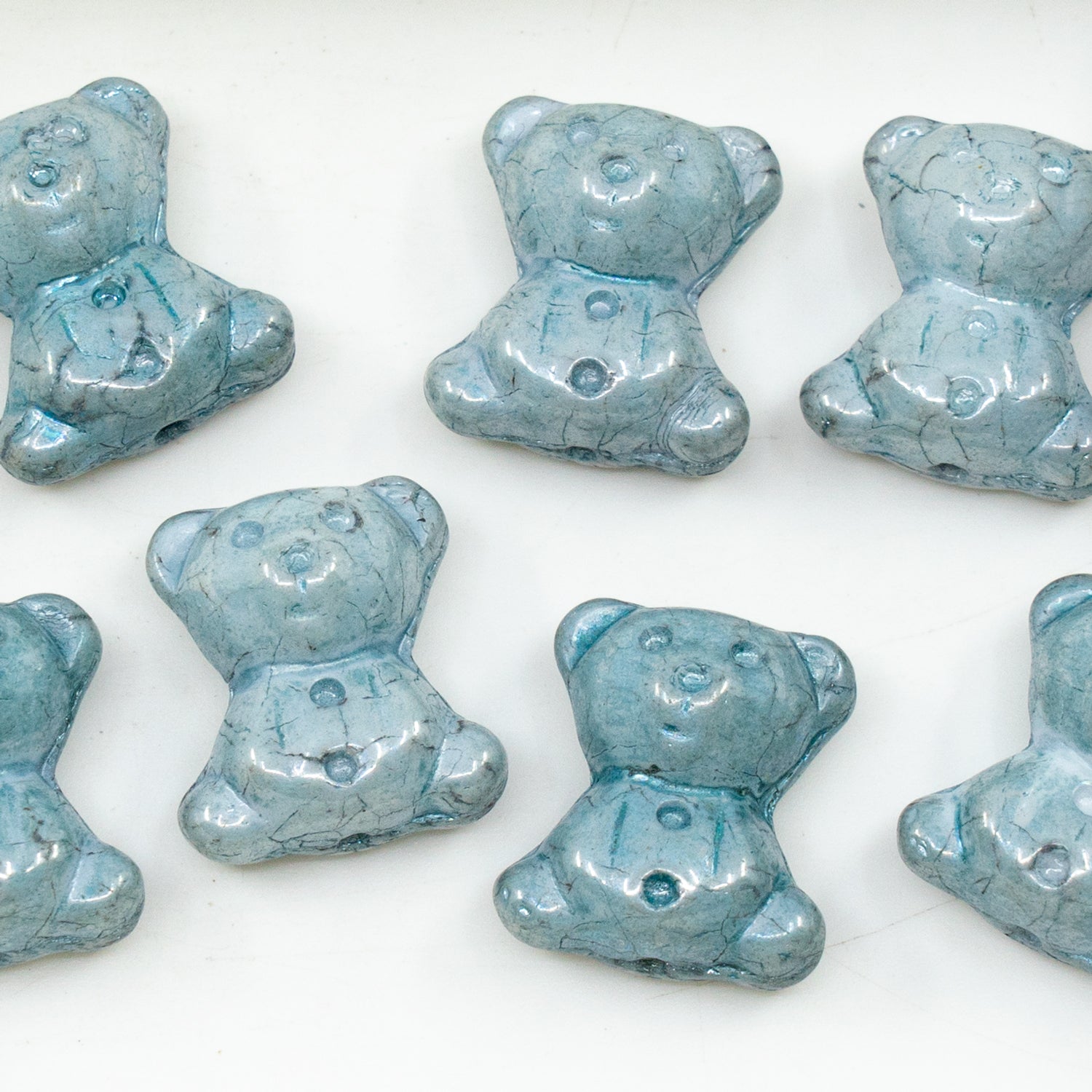 OUTLET 250 grams Cute Bear Beads, 20 x 9 mm, White Luster Green Full Coated (02010-14457), Glass, Czech Republic