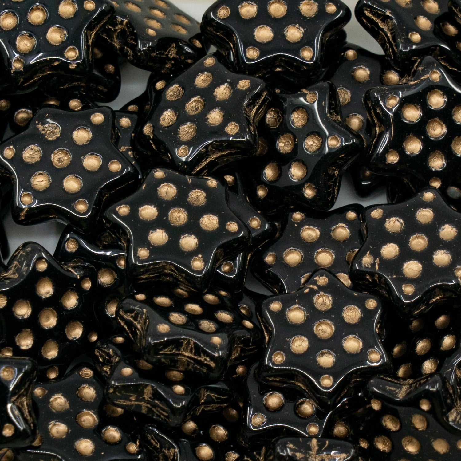 OUTLET 250g Pressed Beads Star With Dot, 16 x 16 mm, Black Gold Lined (23980-54302), Glass, Czech Republic