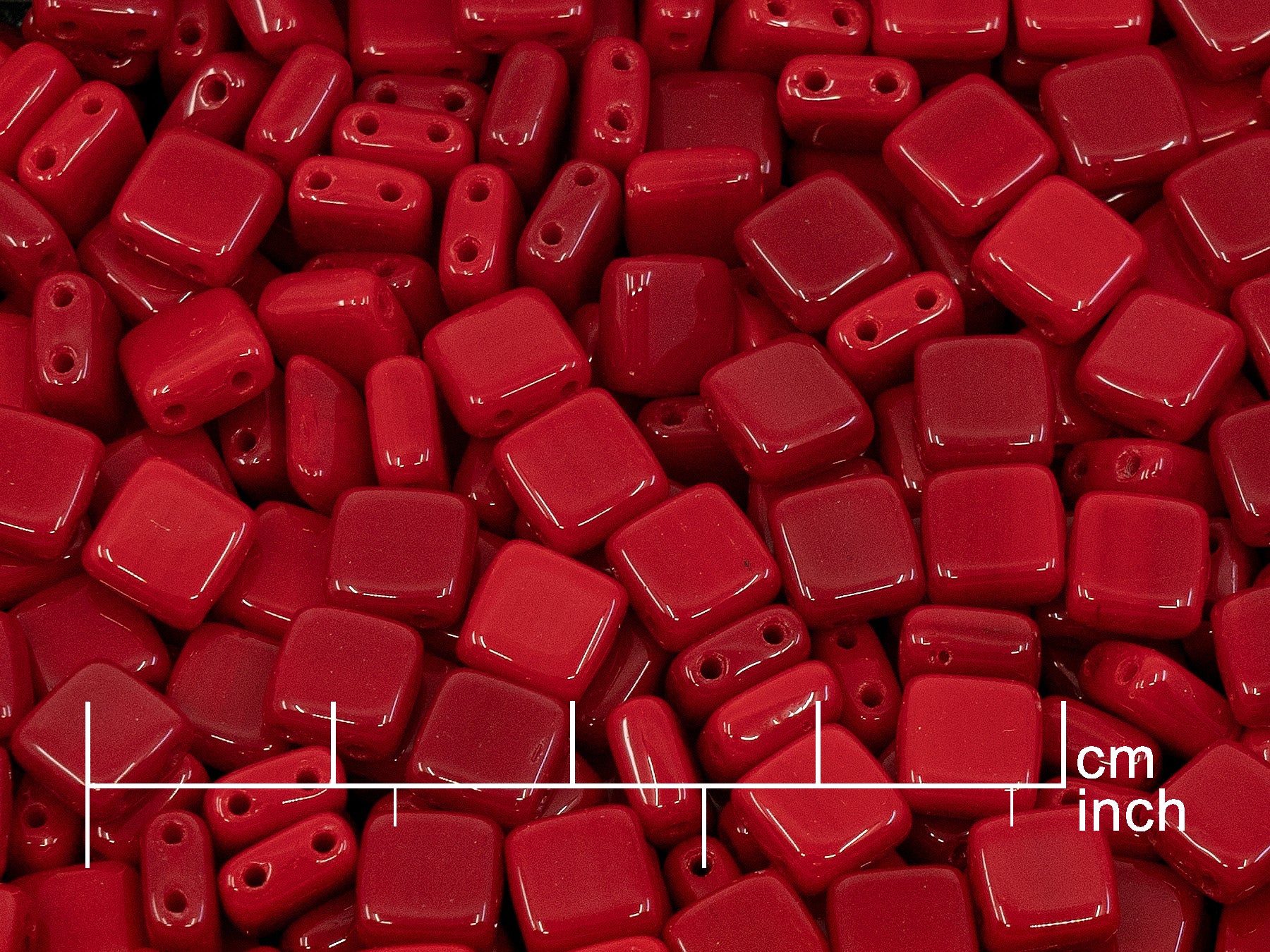 OUTLET 250g 2-Holes Pressed Tile Beads, 6 mm, Opaque Red (111-30516-06x06-93200)