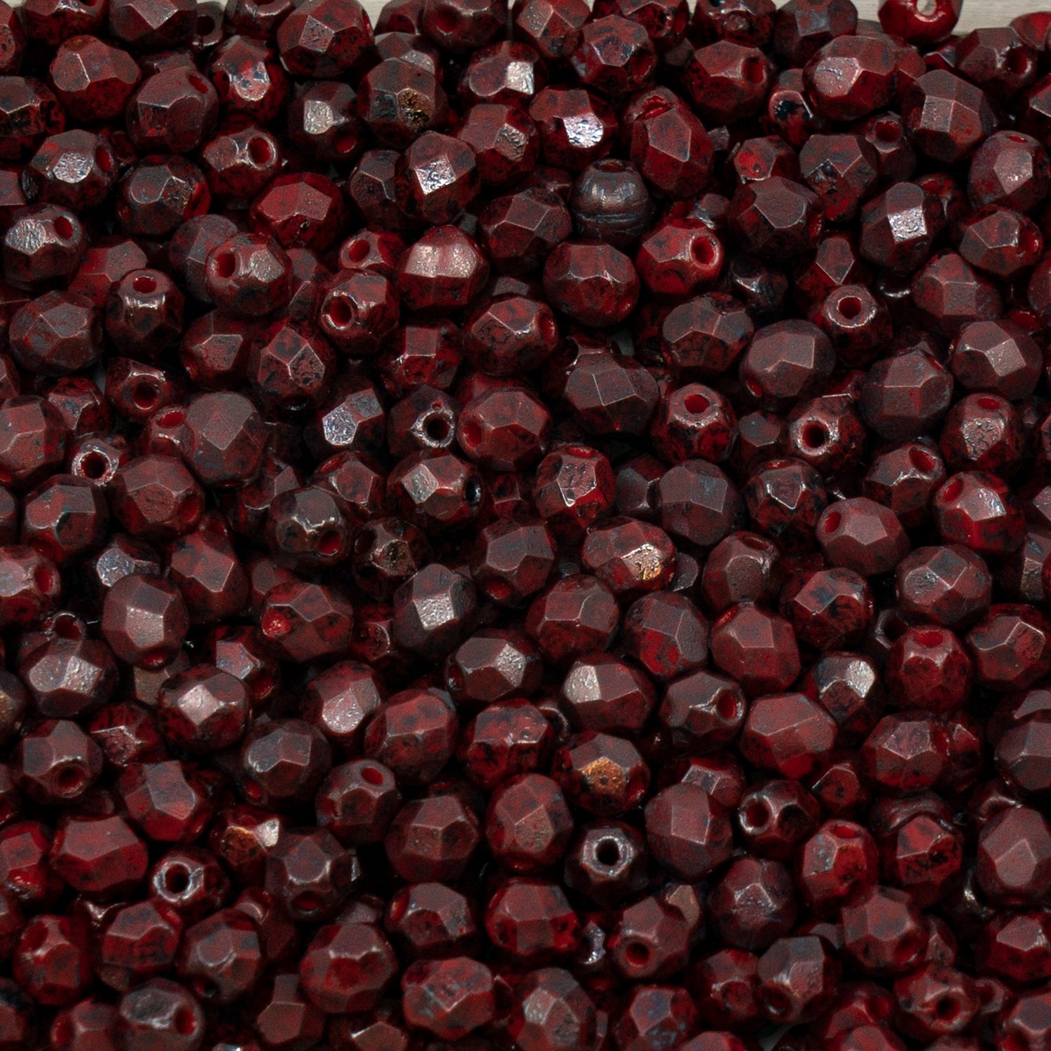 OUTLET 250g Faceted Round Fire Polished Beads, 4 x 4 mm, Opaque Red 60445 (93200-60445), Glass, Czech Republic