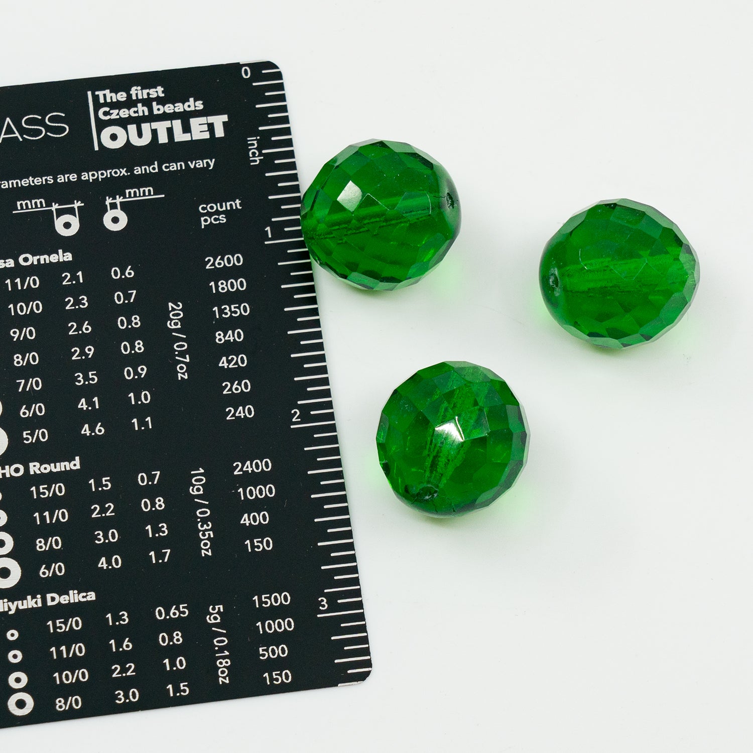 OUTLET 250g Faceted Round Fire Polished Beads, Transparent Green Emerald (50720), Glass, Czech Republic