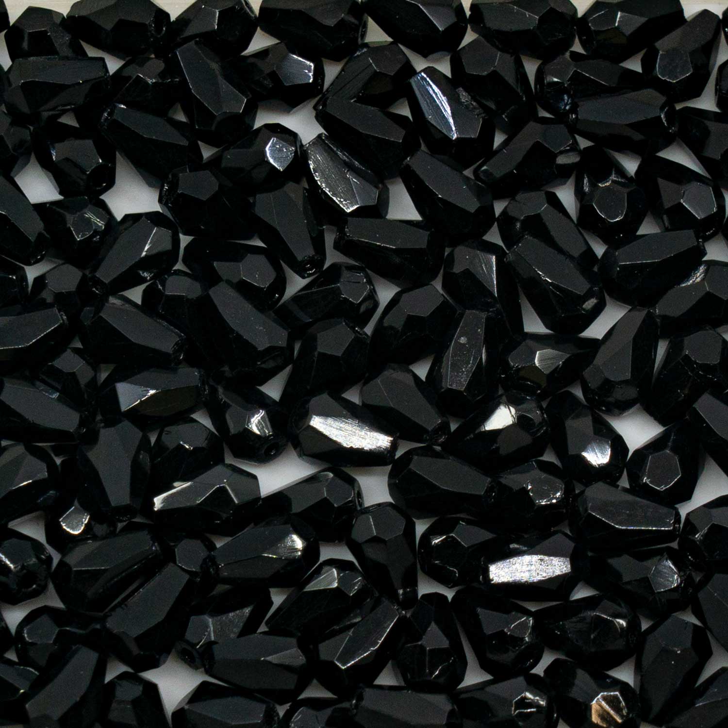 OUTLET 250g Pear Teardrop Beads Faceted Fire Polished, 7 x 5 mm, Black (00030-81800), Glass, Czech Republic