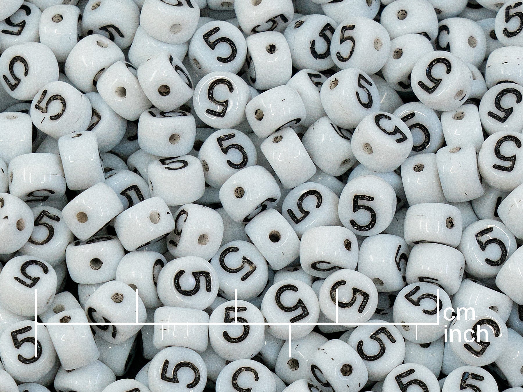 OUTLET 250g Pressed Czech Glass Letter Number Beads, 6 x 6 mm, (5), White Black Lined, Glass, Czech Republic