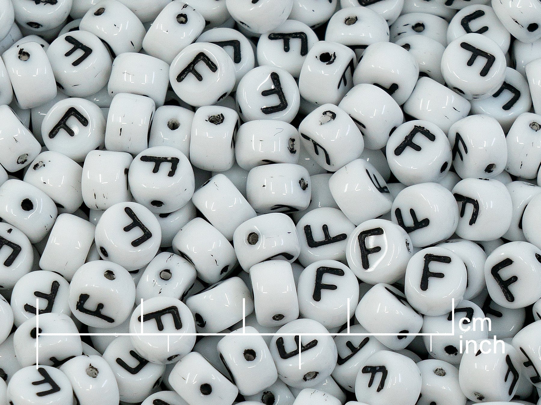 OUTLET 250g Pressed Czech Glass Letter Number Beads, 6 x 6 mm, (f), White Black Lined, Glass, Czech Republic
