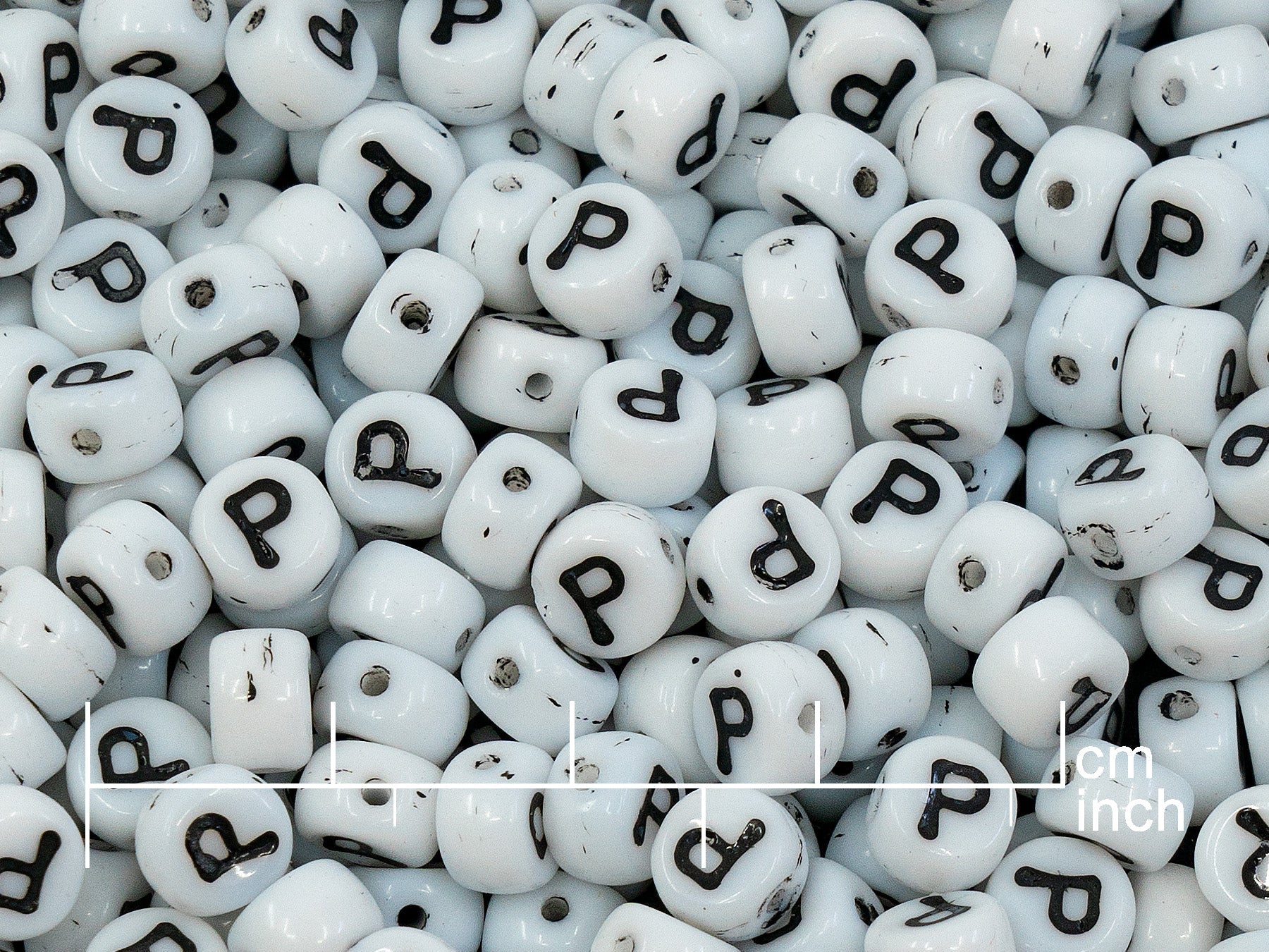 OUTLET 250g Pressed Czech Glass Letter Number Beads, 6 x 6 mm, (p), White Black Lined, Glass, Czech Republic