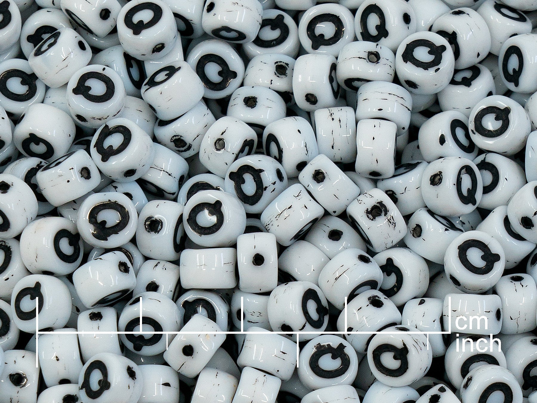 OUTLET 250g Pressed Czech Glass Letter Number Beads, 6 x 6 mm, (q), White Black Lined, Glass, Czech Republic