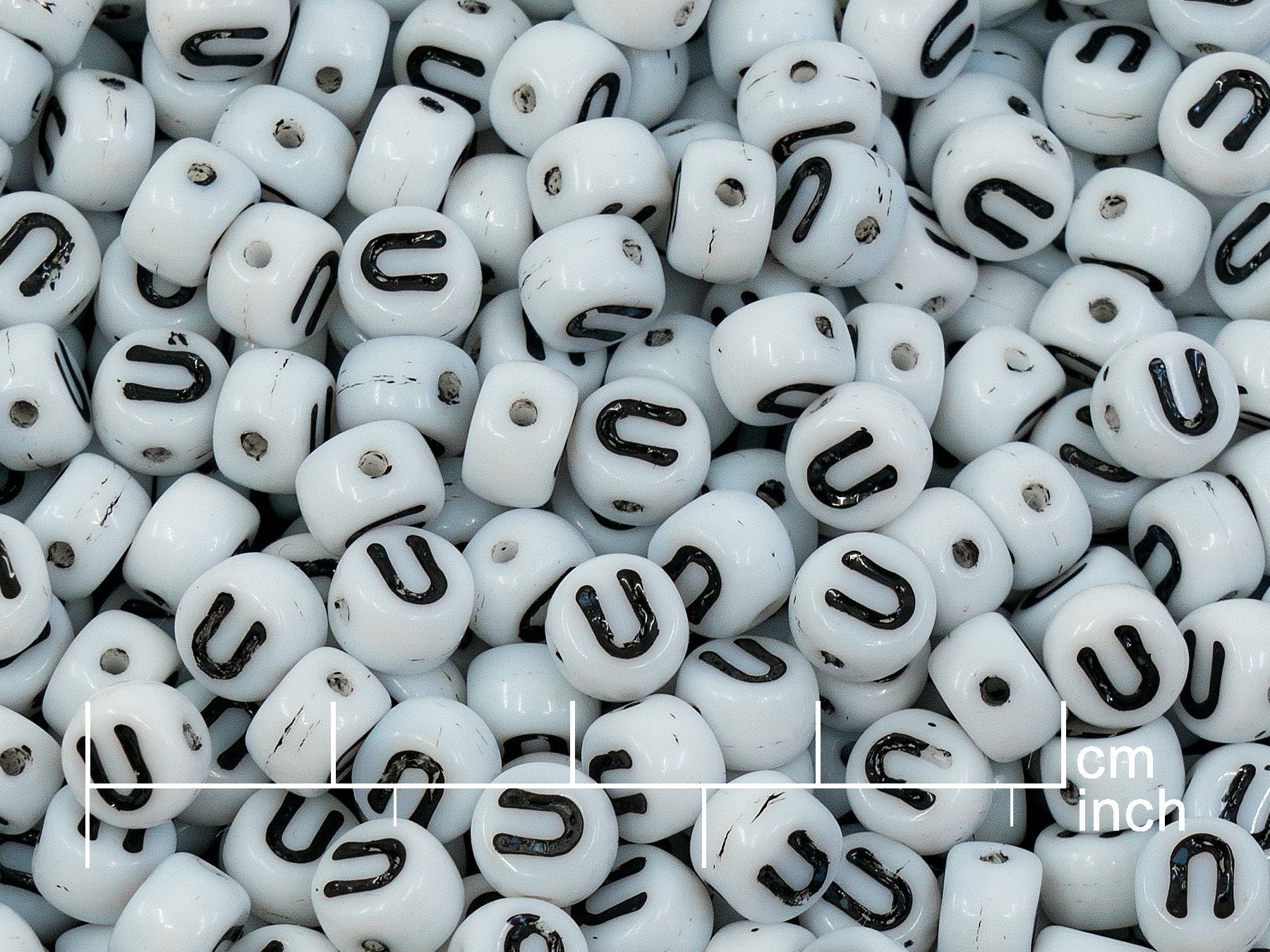 OUTLET 250g Pressed Czech Glass Letter Number Beads, 6 x 6 mm, (u), White Black Lined, Glass, Czech Republic