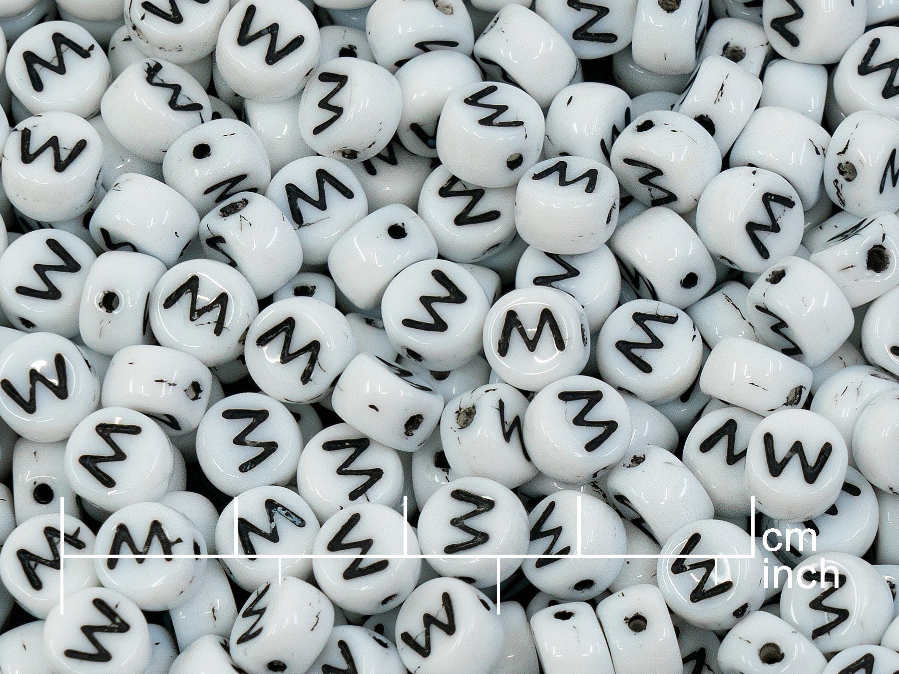 OUTLET 250g Pressed Czech Glass Letter Number Beads, 6 x 6 mm, (w), White Black Lined, Glass, Czech Republic