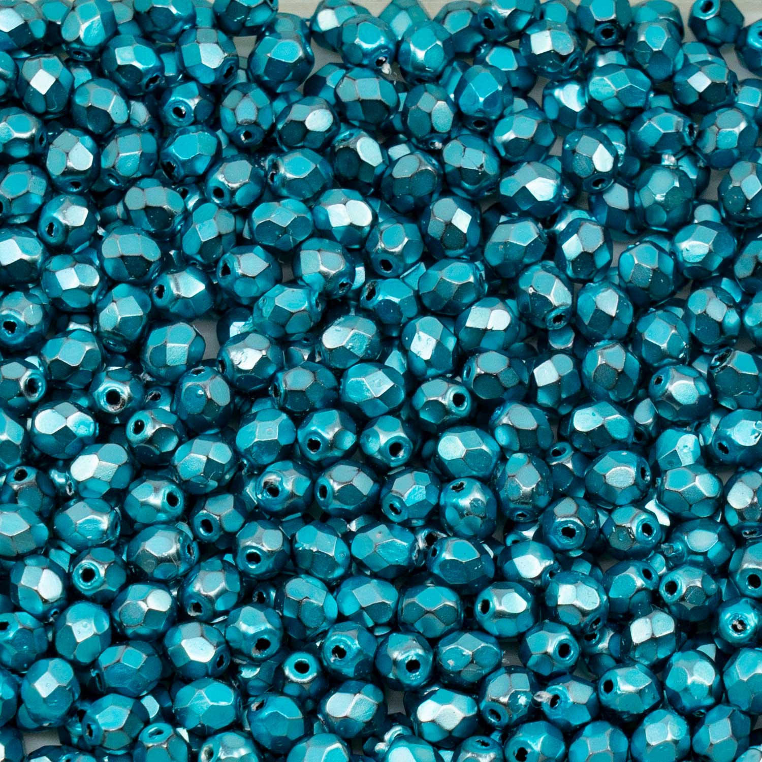 OUTLET Faceted Round Fire Polished Beads, 4 x 4 mm, Black Metallic Turquoise (23980-72154), Glass, Czech Republic