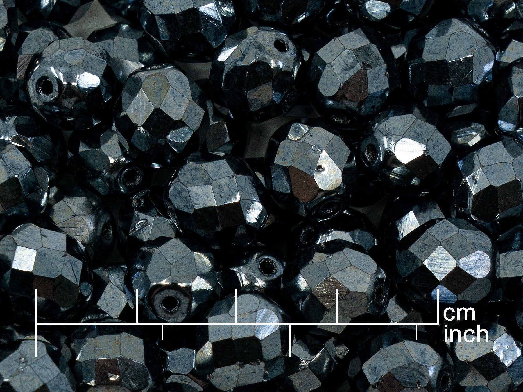 OUTLET 250g Fire Polished Round Faceted Beads, 10 mm, Black Hematite (151-19001-10x10-23980-14400)