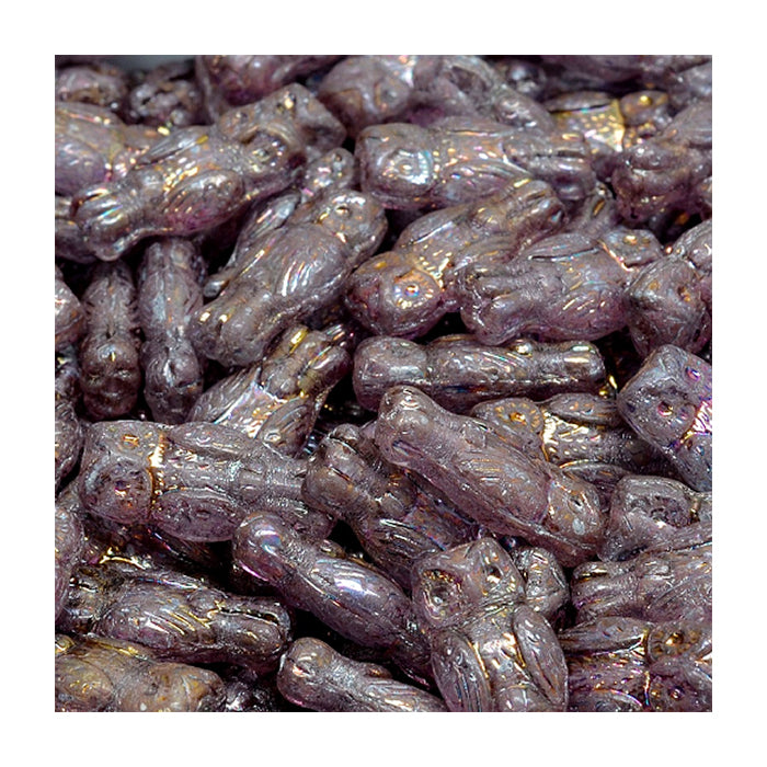Owl shaped Czech glass beads, 1 hole, Amethyst Ab, Glass, Czech Republic