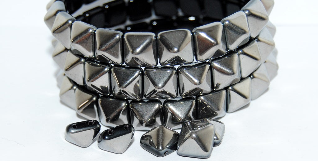 Pressed Glass Beads 2-Hole Square Pyramid, Black Chrome (23980 Chrome), Glass, Czech Republic