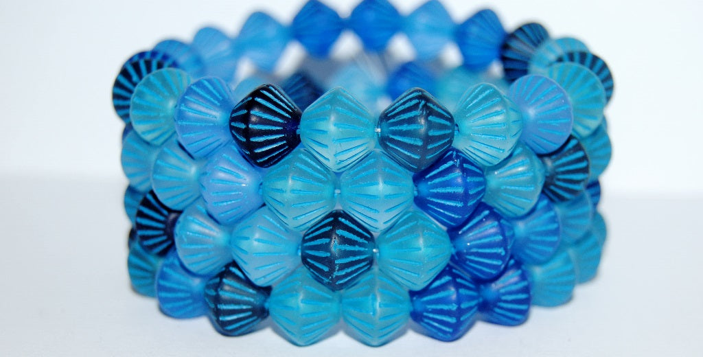 Lantern Bicone Pressed Glass Beads, Blue Mixed Colors 46460 (Blue Mix 46460), Glass, Czech Republic
