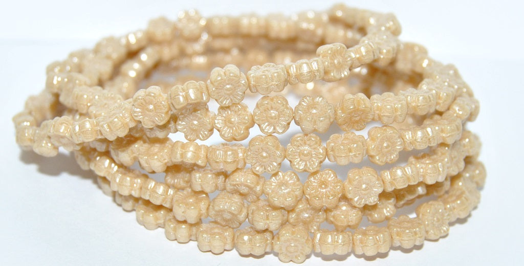 Hawaii Flower Pressed Glass Beads, Beige Hematite (13020 14400), Glass, Czech Republic