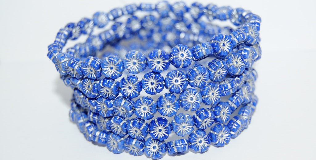 Hawaii Flower Pressed Glass Beads, Opaque Blue 54201 (33040 54201), Glass, Czech Republic
