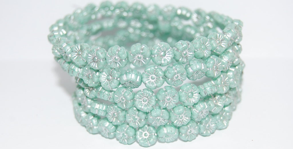 Hawaii Flower Pressed Glass Beads, Opaque Green 54201 (54010 54201), Glass, Czech Republic
