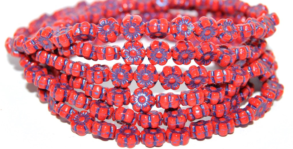 Hawaii Flower Pressed Glass Beads, Red 43812 Metalic (93190 43812 Metalic), Glass, Czech Republic