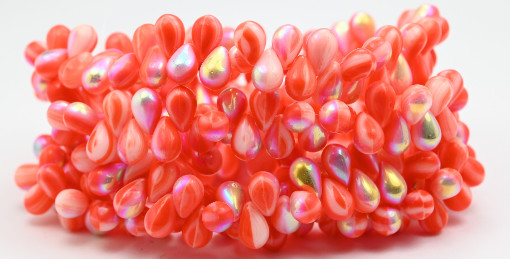 Pear Teardrop Pressed Glass Beads, Green Purple Ab (95000-AB), Glass, Czech Republic ~ STRANDED