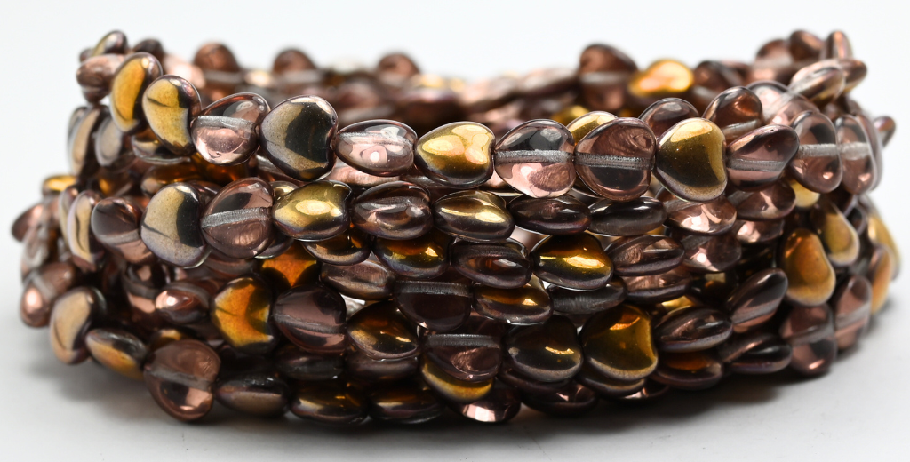 Heart Pressed Glass Beads, Crystal Rose Gold Capri (00030-27101), Glass, Czech Republic ~ STRANDED