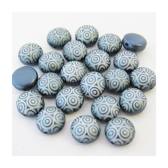 PRECIOSA Candy beads 2-hole round glass cabochon, Laser Etcheded Decor On Montana, Glass, Czech Republic