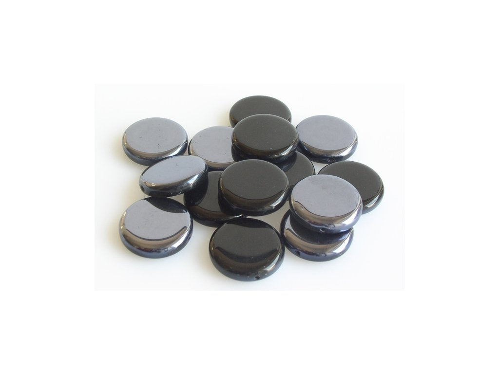 Pressed Beads Flat Round, Jet Black 23701, Glass, Czech Republic