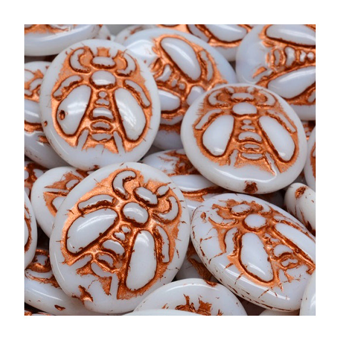 Pressed Czech glass beads bee, White Copper Relief, Glass, Czech Republic