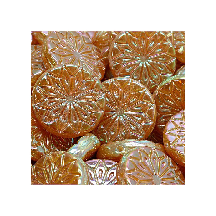 Pressed Czech glass beads origami flower round big with ornament, Caramel, Glass, Czech Republic