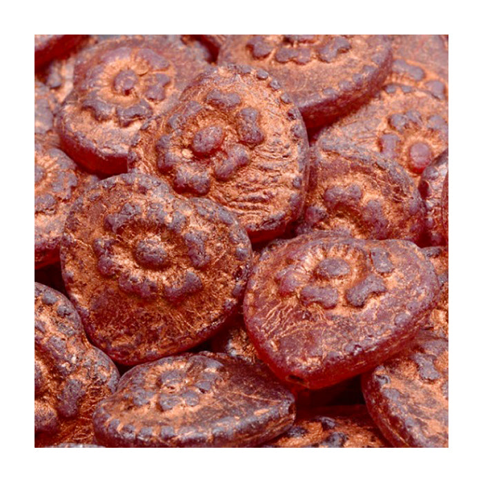 Pressed Czech glass beads rose inside heart, Red Bronze Coating, Glass, Czech Republic