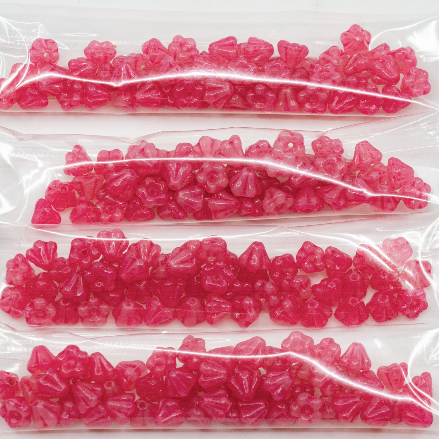 OUTLET 10 grams Bell Flower Beads, 4 x 6 mm, Opal Pink Dristex Intense Pink (71000-D0108), Glass, Czech Republic