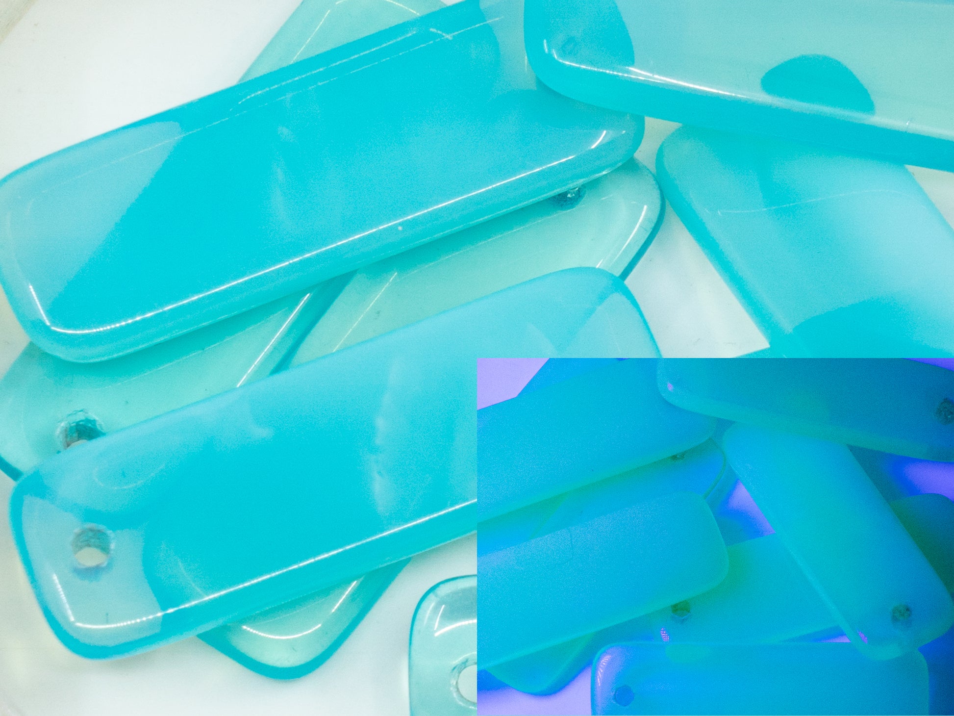 OUTLET 10g Rectangle Pendant Beads, 30 x 10 mm, Uran Turquoise, Glass, Czechia