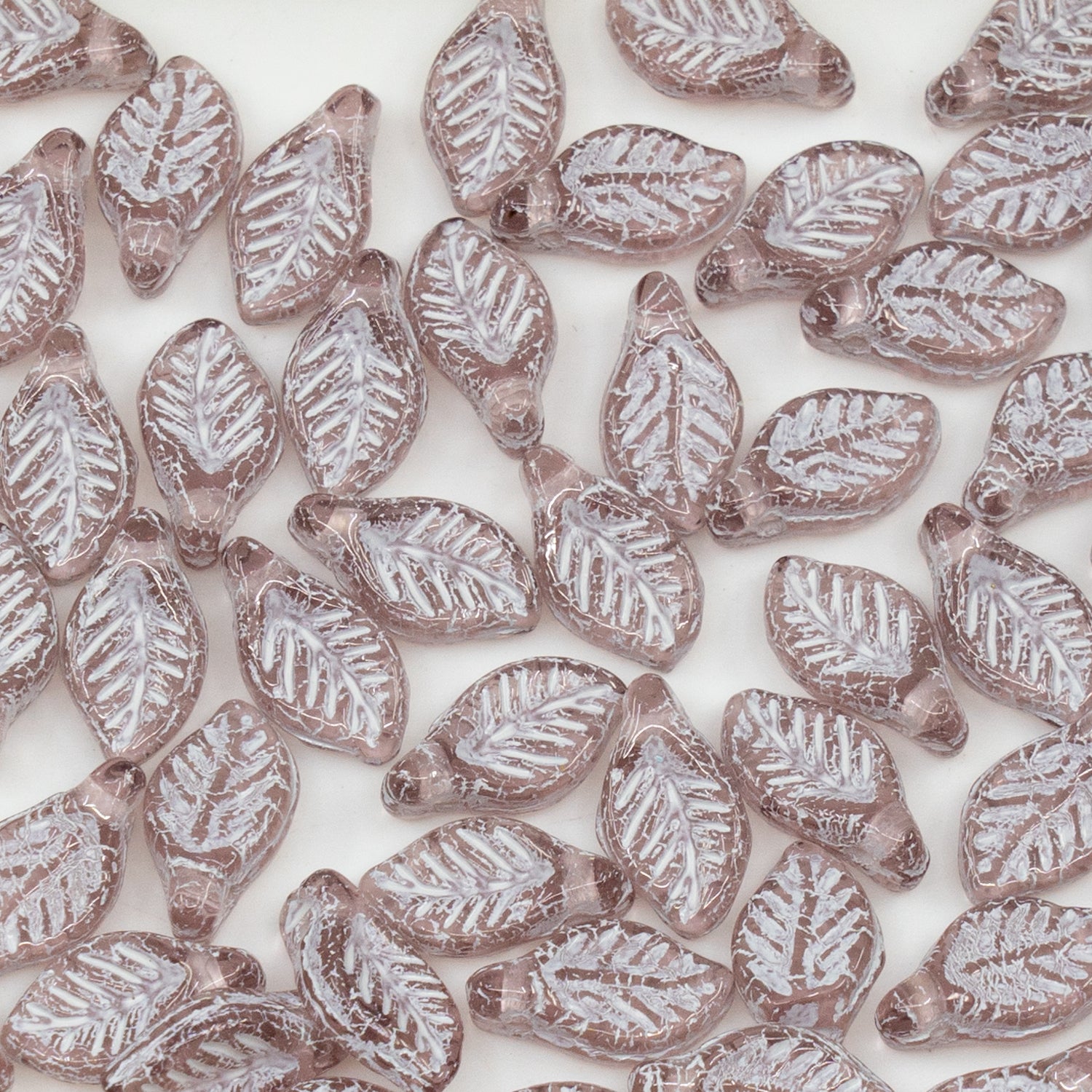 OUTLET 250g/50g Bay Leaf Beads, 6 x 12 mm, Transparent Light Amethyst White Lined (20020-54312), Glass, Czech Republic