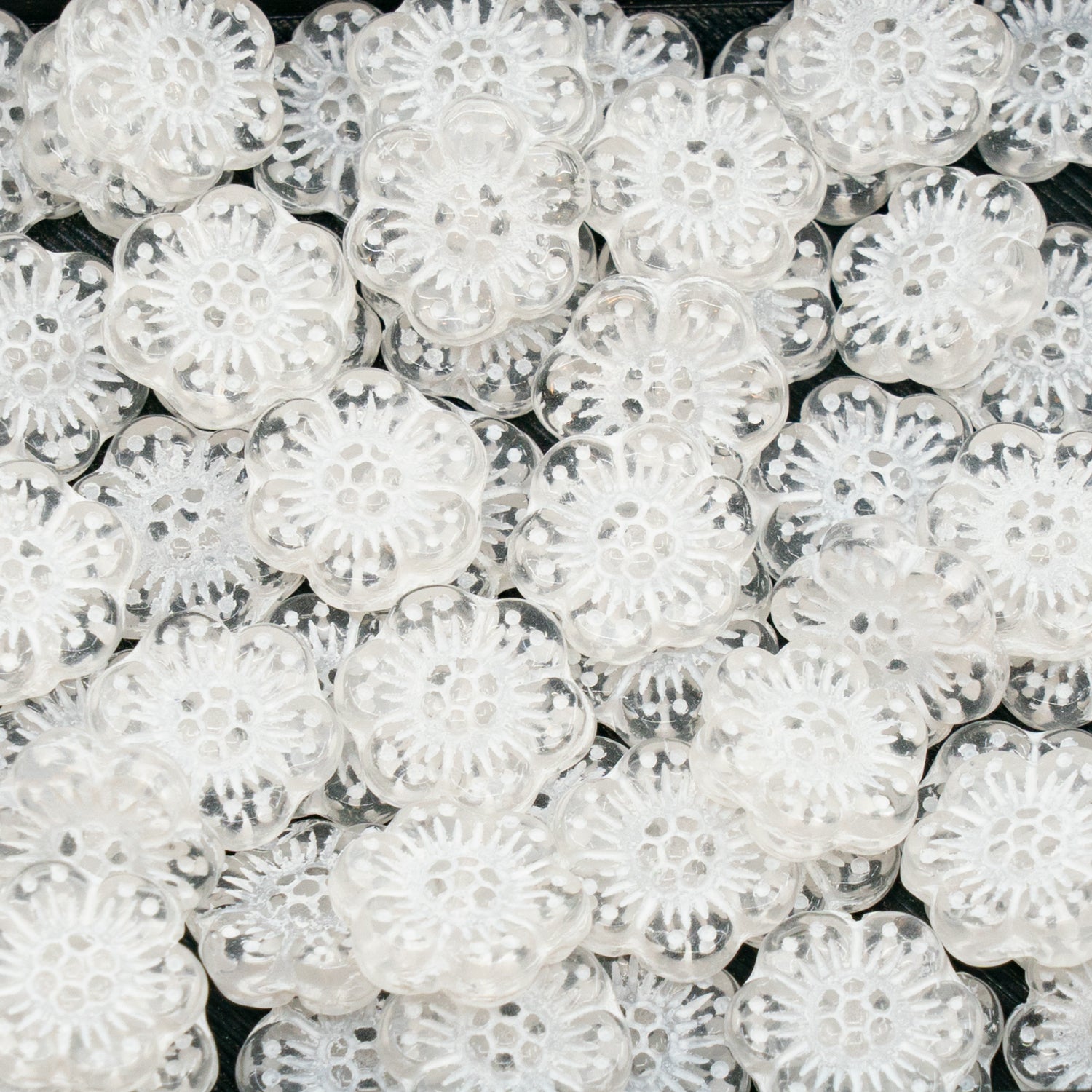 OUTLET 10 grams Flower Pressed Glass Beads, 14 x 14 mm, Crystal White Lined (00030-46401), Glass, Czech Republic