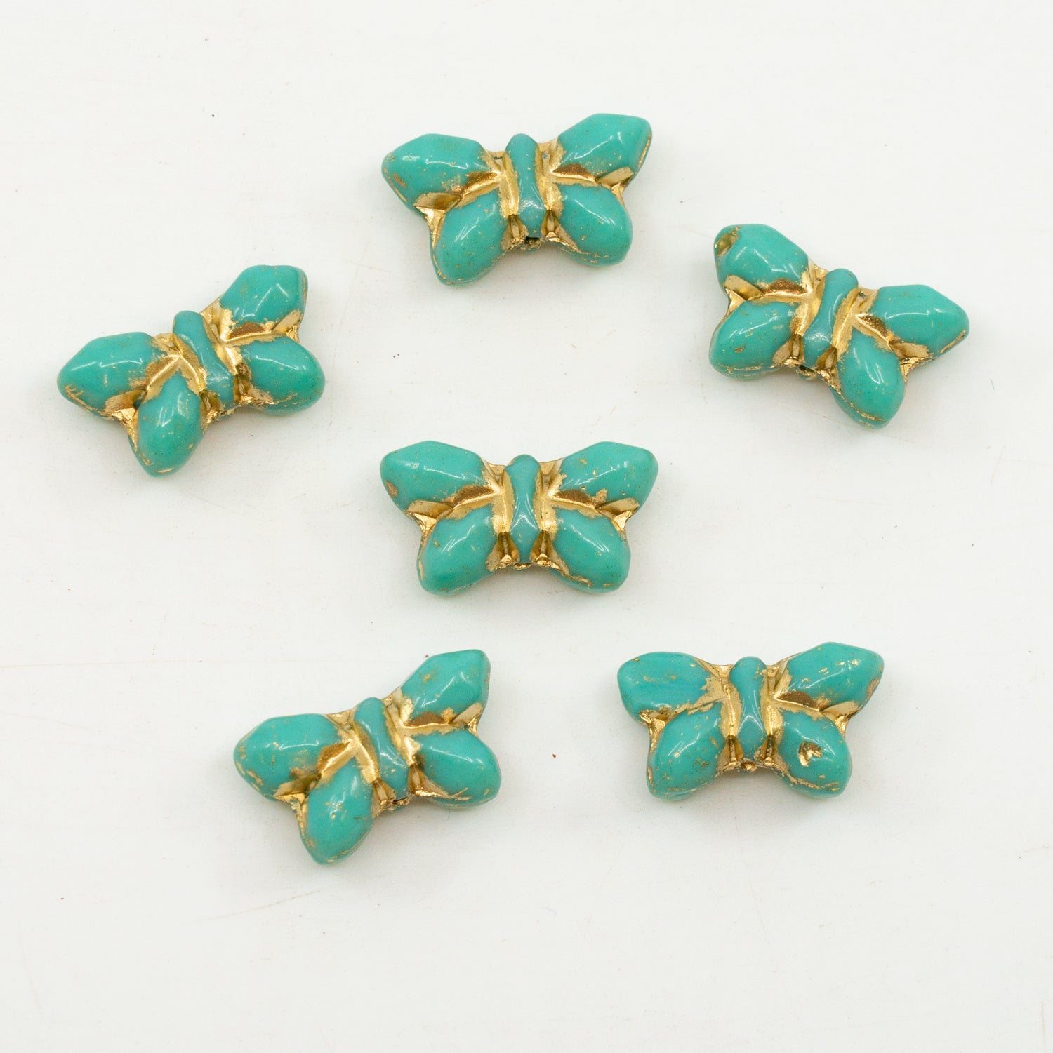 OUTLET 10 grams Simple Butterfly Pressed Glass Beads, Turquoise Gold Lined (63130-54202), Glass, Czech Republic