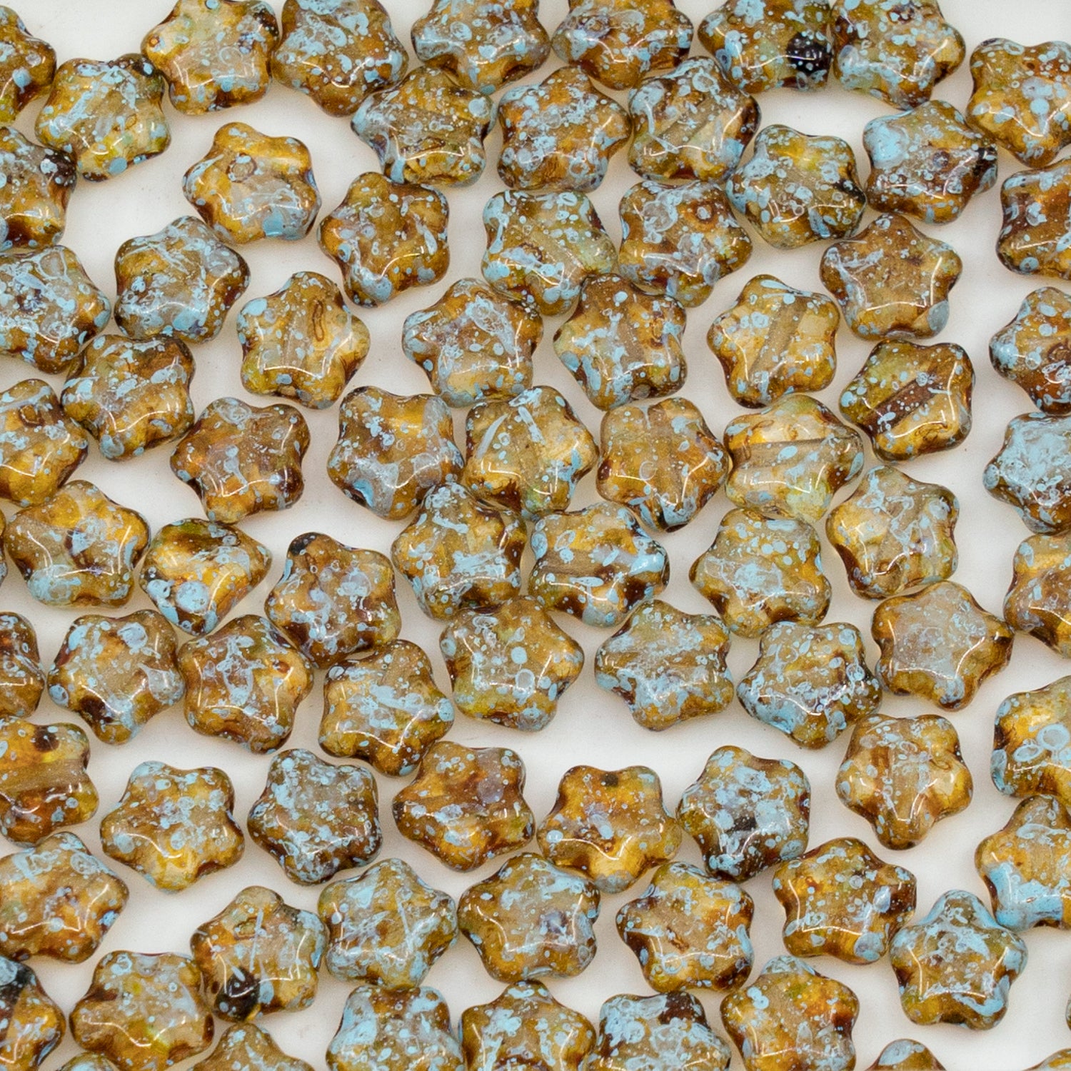 OUTLET 250g/50g Flat Star Beads, 6 x 6 mm, Crystal Travertin Light Blue Lined (00030-86800-54308), Glass, Czech Republic