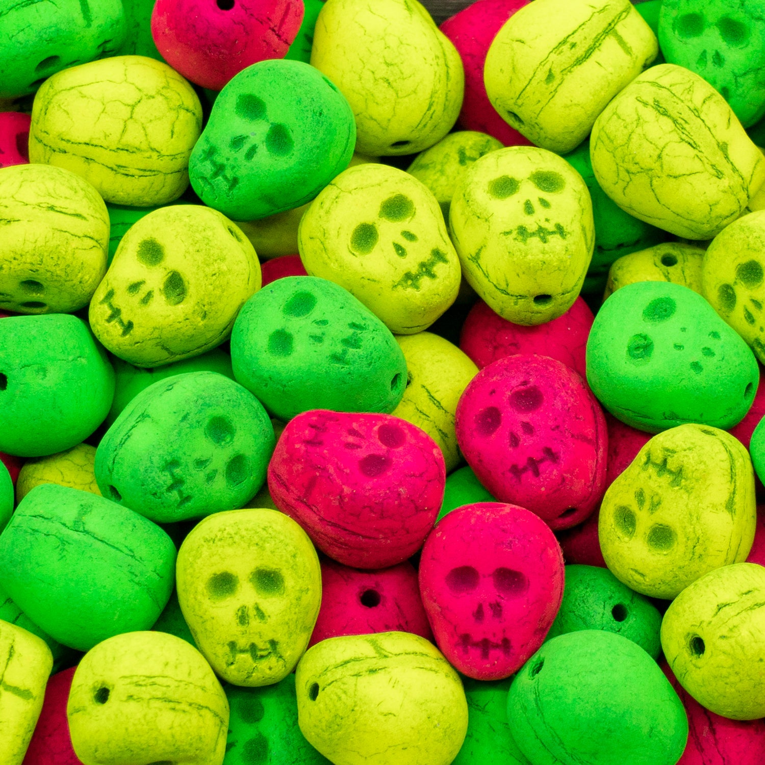 OUTLET 10 grams Skull Beads, 12 x 12 mm, Neon Mixed Colors (neon-mix), Glass, Czech Republic