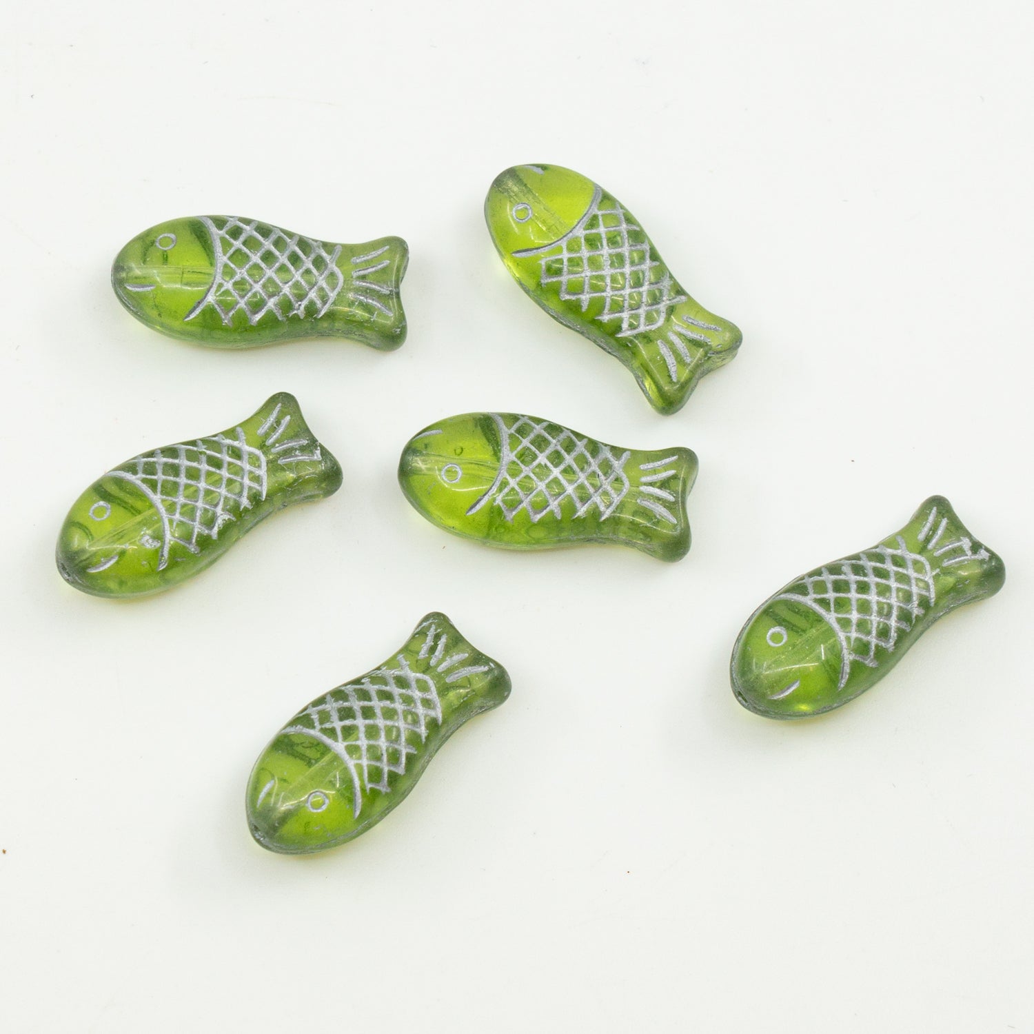 OUTLET 10 grams Fish Pressed Beads, 20 x 7 mm, Transparent Green Silver Lined (50400-81403), Glass, Czech Republic
