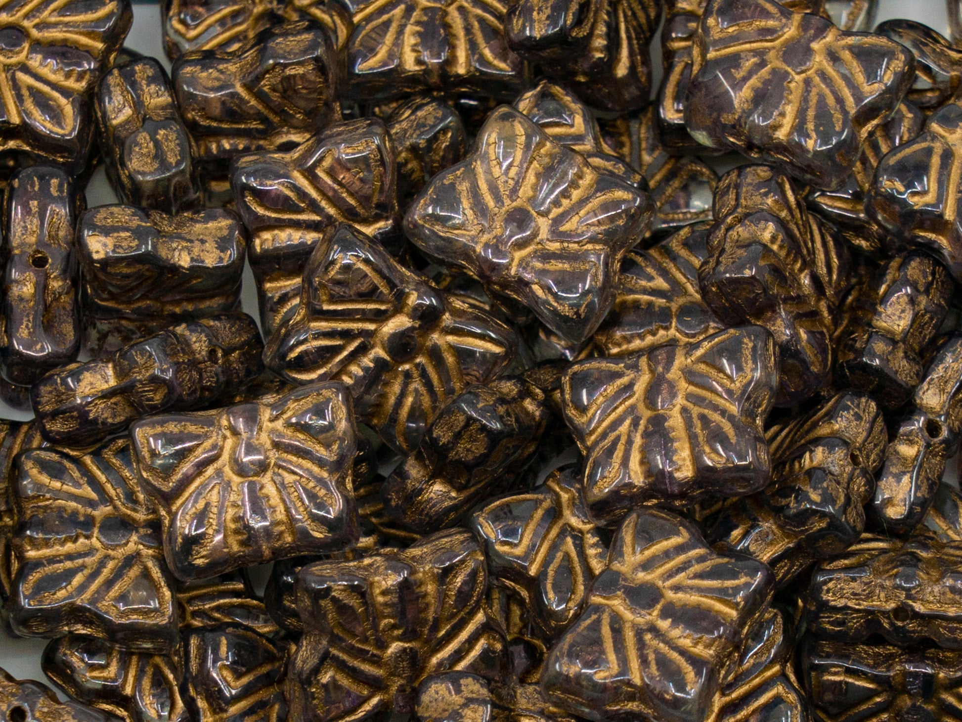 OUTLET 10 grams Butterfly Beads, 15 x 12 mm, Crystal Luster Lila Gold Lined (00030-14494-54202), Glass, Czech Republic