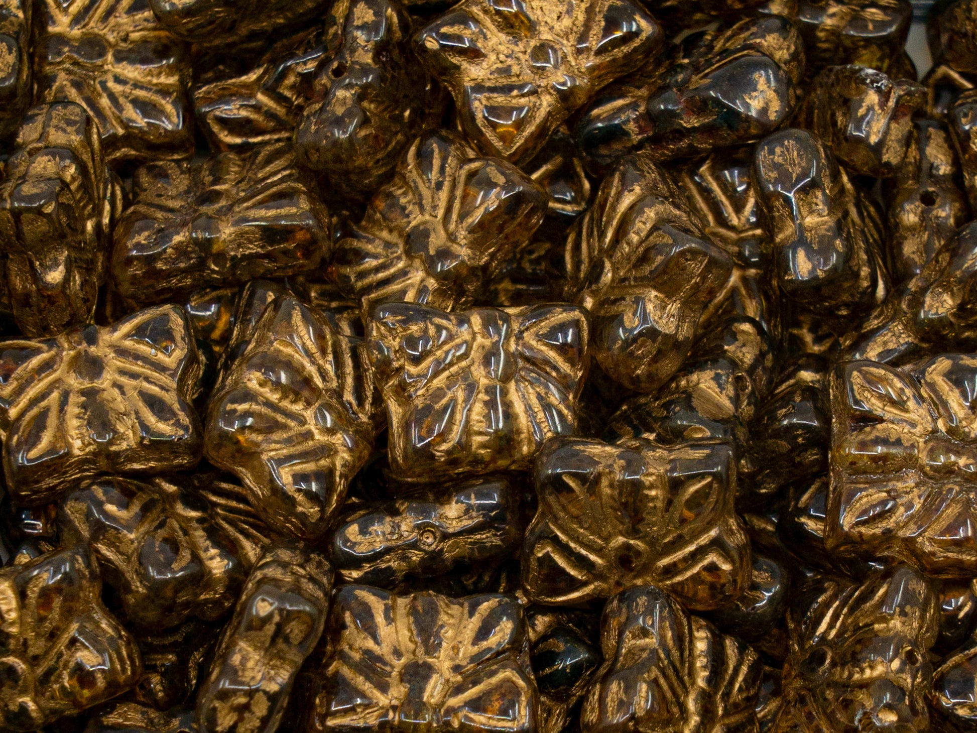 OUTLET 10 grams Butterfly Beads, 15 x 12 mm, Crystal Travertin Gold Lined (00030-86800-54202), Glass, Czech Republic